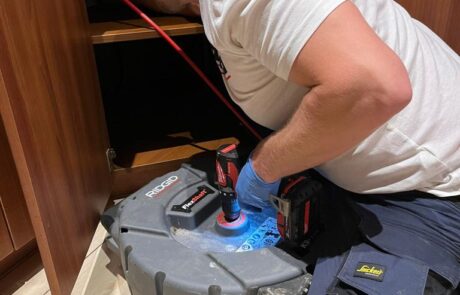 Jeden s nejčastějších případu. Dřez se nejčastěji ucpává tukem a ano často slýcháme, že zákazník říká, že do dřezu žádný tuk nelije. Tuk se v potrubí může držet klidně i 10 let, tak důvod ucpaní mohl způsobit nájemník před vámi. Když se dostanete do bodu, že voda z dřezu neodtéká vůbec, tak tuk z potrubí se vždy musí dostat pryč. My tento případ řešíme rozbitím tukových kamenů pomocí tukového vymetače FelexShaft od značky RidGid a následným vysátím průmyslovým vysavačem. Opět doporučuji se po vyčištění do potrubí podívat kamerou, kus tukového kamenu může v potrubí zůstat a může způsobit následné ucpání. Co se týče hydroxidu, ten vám nikdy moc nepomůže na tvrdé tukové kameny a naopak když potrubí neotéká vůbec a vy tam začnete sypat hydroxid, tak se ani nedostane k místu ucpaní. Zůstane vám někde v sifonu a naopak hrozí, že tam někde zatvrdne a celý proces čištění je složitější. Proto doporučuji, když už potrubí vydává zvláštní zvuky, nebo spatně odtéká, neoddalovat vyčištěni potrubí.